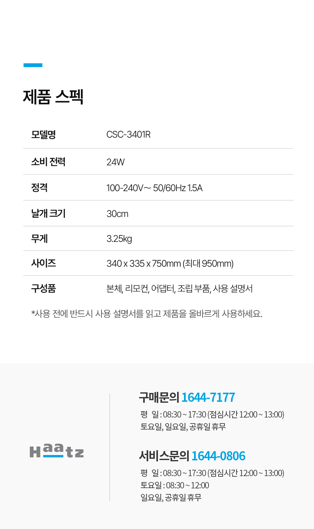이미지 확대보기하츠 12인치 써큘레이터 에어플로어 CSC-3401R