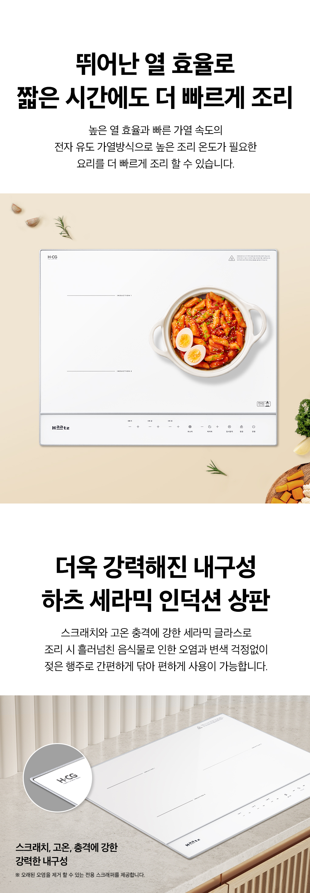이미지 확대보기[NEW신상] 하츠 클레르 3구 인덕션 화이트 EIC-30HWR252