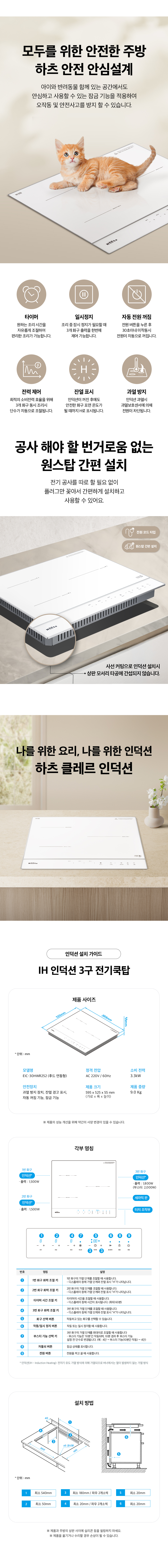 품명 및 모델명 하츠 클레르 3구인덕션 / EIC-30HWR252